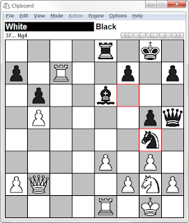 1.Nf3 Nf6 2.c4 e6 3.g3 でガッカリ。フィアンケットに対して、3...Bd6 はあまり良い手ではないと思ったので指しませんでした。